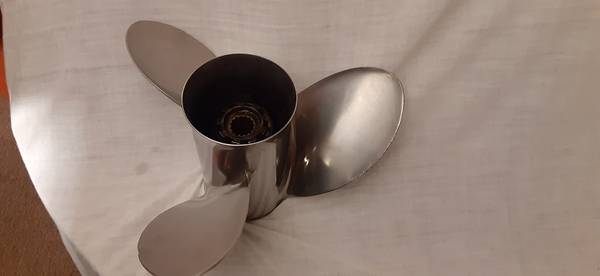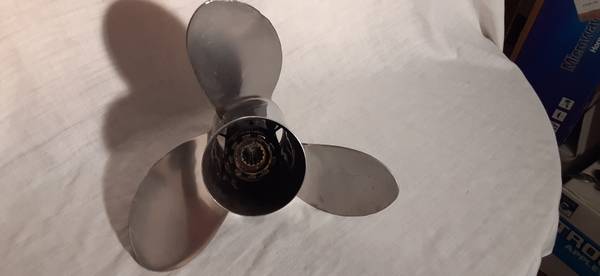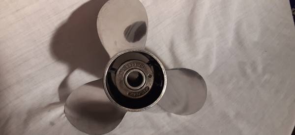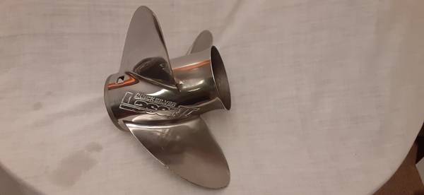 For Sale - Mercury / QuickSilver Laser II boat motor propeller. #48-16990-20 20 pitch Stainless Steel 3 Blade. Has some scratches and minor ding in one of the blades.