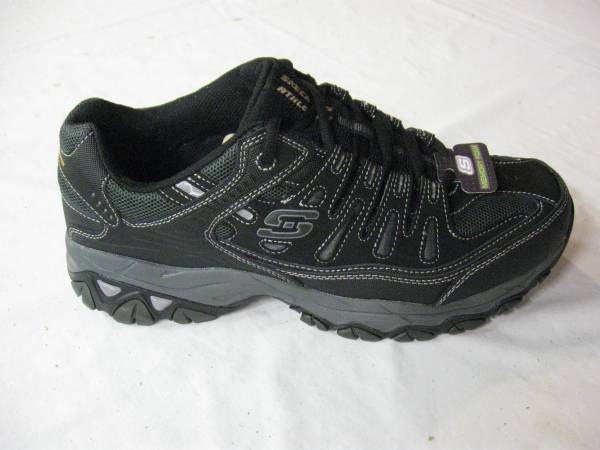 This is a pair of brand new in the box never worn men's size 11.5 Skechers lace up, style 50125BKCC, " After Burn " shoes. They are indoor/outdoor, black color, contours to your foot and with air cooled memory foam. Priced at 50% of purchase and cash at time of pick up.