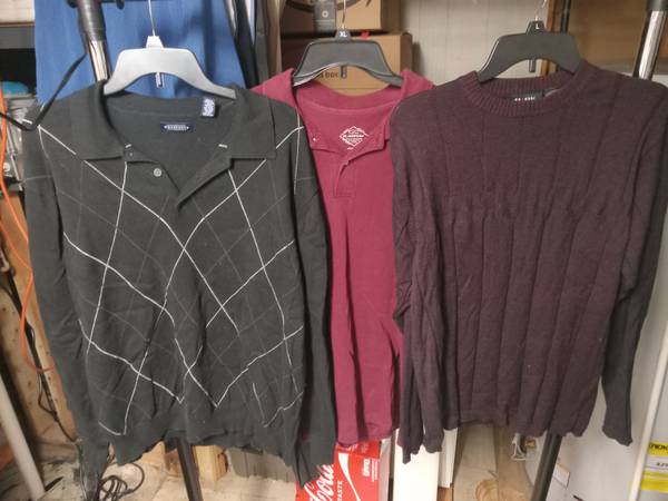 For sale are men's XL shirts. Some were mine, and some were purchased from Goodwill with the intent of donating to a veterans shelter in our area, but they are not allowed to accept them (unsure why). We are selling them 7 for 15.00. Thats about 2.00 per shirt!! You pick four (or more) button down shirts, and three (or less) from the ones pictured for 15.00.