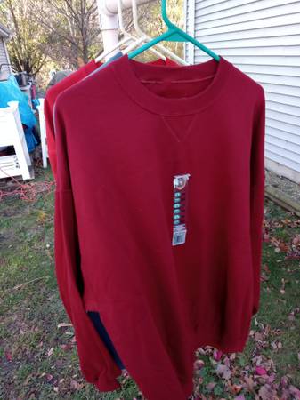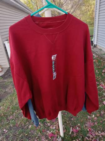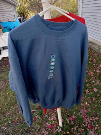 For sale are three mens XL Jerzees sweatshirts that were purchased but won't be needed. All three have never been worn and have been stored in a plastic container. Together they sold for between $35.00 and $40.00 with tax and we are selling them as a set for $20.00, reduced from 25.00.