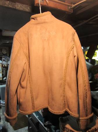 Charter Club faux suede jacket Embroidered back and sleeves 85% polyester 15% acrylic Color: tan Woman's Size: XL 30