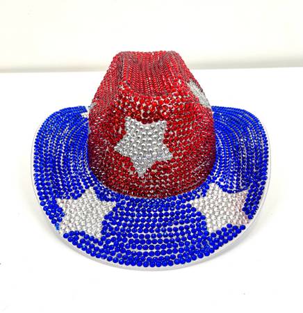 This adult size sparkling rhinestone country hat is brand new! Perfect for wearing to a country concert, a Beyoncé Concert, or anywhere you want to show your love for the USA!
