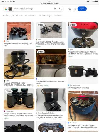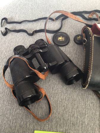 2). K-Mart Special 7x35 used Field binoculars in leather case with two leather straps, does show wear but I tested them and they work perfectly with the focus adjustments and lenses.