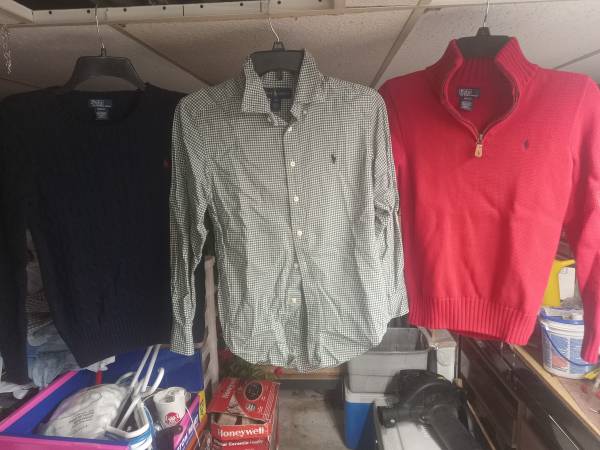 For sale are four boys 8 8-10 long sleeve Ralph Lauren (Polo) shirts. Included are a few button down shirts, and a few sweaters. Generally in very good condition with no known Rios, tears, or...