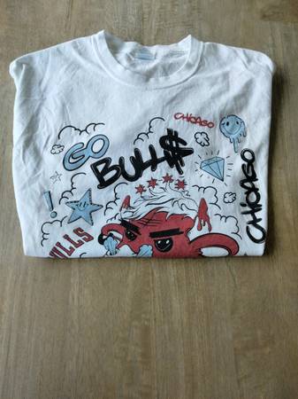 Brand New Chicago Bulls T-Shirts & Hats. 5 size Large t-shirts. $5 each 2 hats. $10 each All brand new, never worn. Call or text Bob: