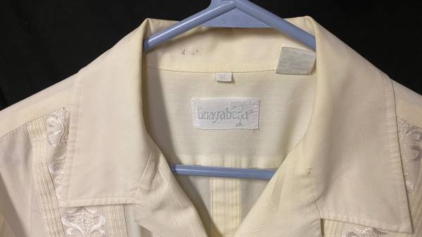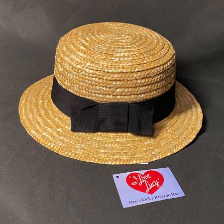 Ricky's straw hat is nearly-new, just occasionally worn for one Halloween. My ivory Guayabera men's embroidered (L / XL) shirt is original/vintage and in excellent condition. Also offering up a matching women's Lucy polka-dot dress, apron & wig costume, sold separately.