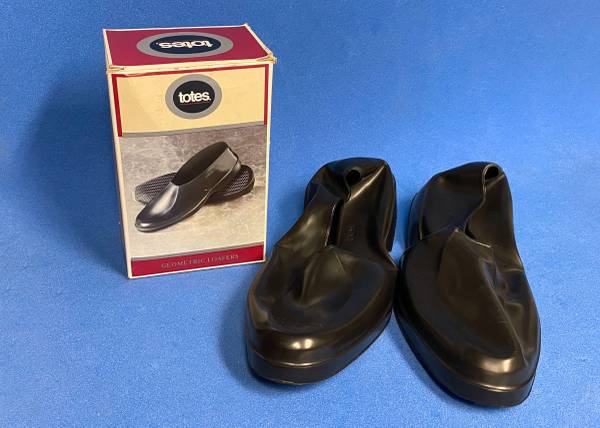 New in box, never worn waterproof shoe protectors by Totes. Flexible rubber for easy-on / easy-off for wet-weather commuters.