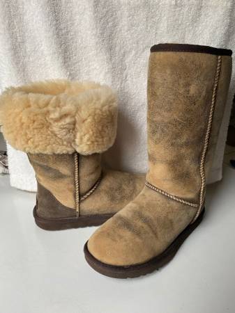 UGG Australia Classic Tall Womens Boots Sz 6 S/N 5804 color - Brown Distressed Suede Leather Shaft height - 11" Pure wool linings In nice condition