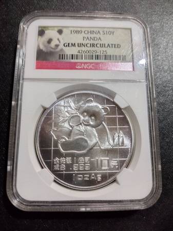 New in the original mint slab case. 1989 China S10Y Panda, GEM UNCIRCULATED silver coin, 1oz fine silver. Serious inquiries only please, selling for $80, price is firm. Located In Aurora for pick...