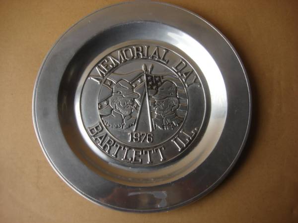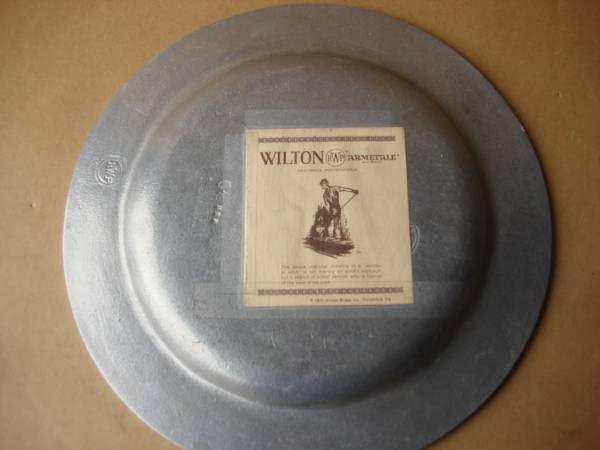 IT IS 11 " IN DIAMETER BY WILTON BRASS CO. CERTIFICATION PAPERS ON BACK. THAT IS A TAPE ON BOTTOM EDGE OF THE PLATE. (I GOT MOST OF IT OFF 10 12 5