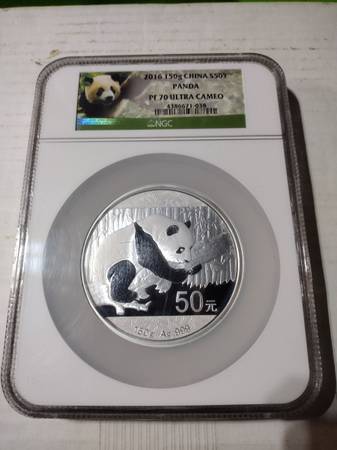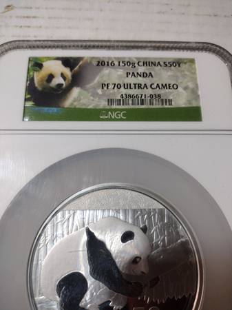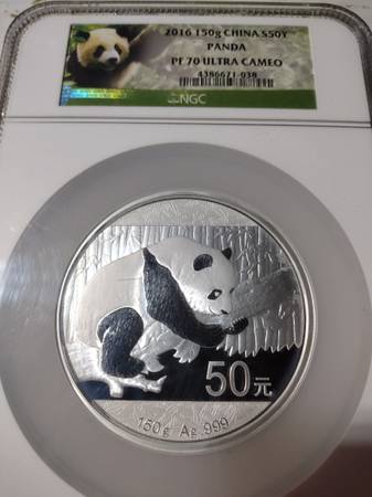 Beautiful 2016 150g china S50Y panda, PF 70 Ultra Cameo silver coin. New in the original mint slab case as seen in photos. Great for any panda coin collection, nice 150 grams of fine silver. Serious inquiries only please, selling for $400, price firm. Located in Aurora for pick up, will meet at the Aurora Police department located in Aurora Illinois. Contact Joe at show contact info