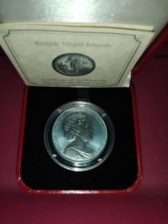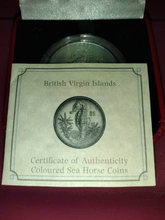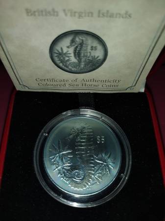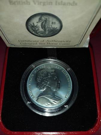 Beautiful collectible coin, 2014 British Virgin Islands coloured sea horse coin. Metal content - titanium. Brand new in the original case and holder, and includes the certificate of authenticity. Serious inquiries only please, selling for $40 firm. Located In Aurora for pick up, contact Joe at show contact info