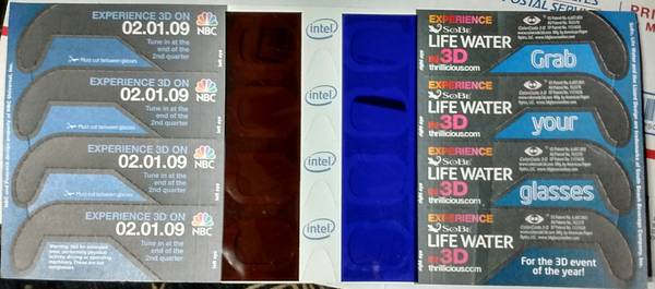 New set of 8 3D Glasses from the 2008 Super Bowl. For pickup.