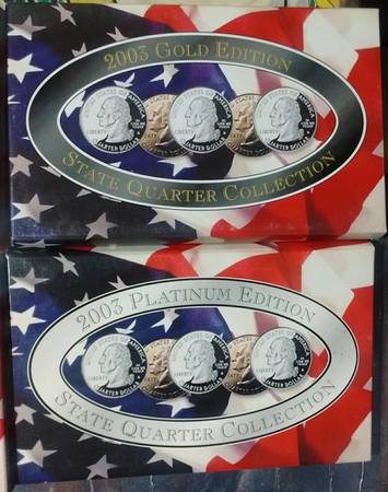 NEW $15 each set. 2003 & 2004 Gold and Platinum plated State Quarters set of 5 coins each. For pickup.