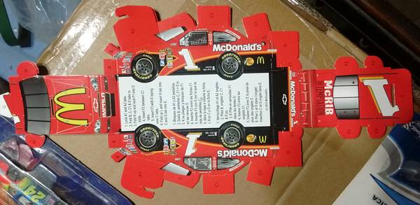 Mini Helmets, car shape tee shirt, Diecast cars. Rare McDonald's folded car red. All NEW. For pickup.