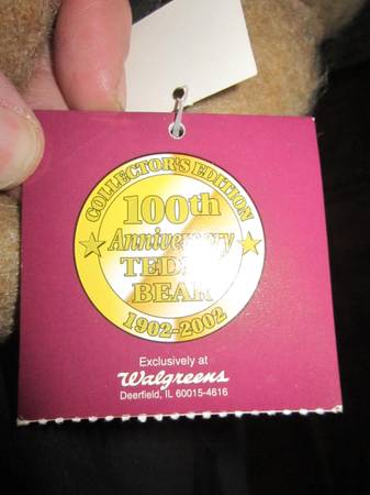 Vintage Dan Dee Collectors Choice Collectors Edition 100th Anniversary Theodore "Teddy" Roosevelt Bear 1902-2002 With original tags and medallion Arms are moveable 1030