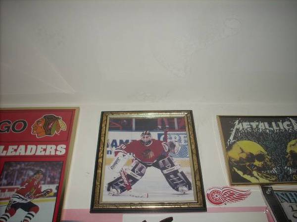 Ed Belfour, Jeff Hackett, Jimmy Waite (autographed) and Patrick Roy framed gloss photos..Total of 9 photos that are framed, Size: 10 x8..$45 for all 9