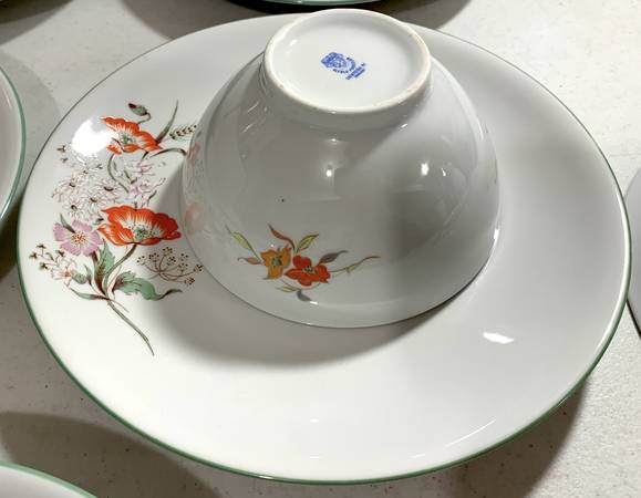 **Slight mfr imperfection to NOTE: 1 dinner plate has 2 tiny black marks & 1 bowl has 1 tiny black mark baked into the glaze when made (see photos)