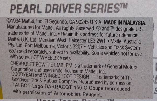 Please include a phone number in your email. Thanks. Hot Wheels Pearl Driver Series Cars These are from the Pearl Driver series from 1994. Both metal bodies & chassis. Included Cars: *Talbot...
