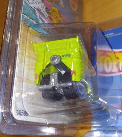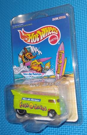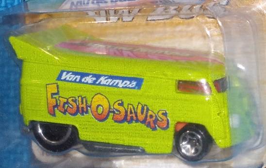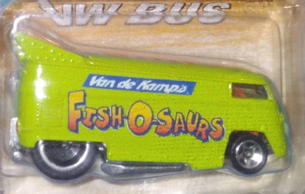 Van De Kamps put out this promo bus in 1997. I'm including the Protect-O-Pack free. That year they had a promotion with 2 different cars. One was the Deora; in hot pink, and the other was the Fish-O-Saurus VW Drag Bus in neon green. It was limited to only 50,000 of each.