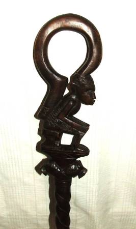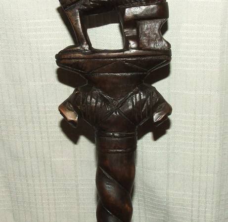African Folk Art Hand Carved Twisted Dense Wooden Walking Stick