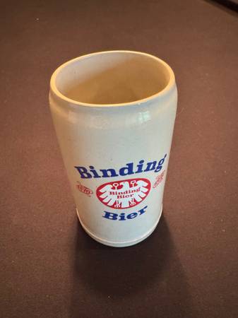 Binding Bier Frankfurt Germany Glazed Stoneware 100th Anniversary Beer Mug from 1970 - picked up in Frankfurt Germany in 1975 - excellent condition - 7 1/2” x 4”