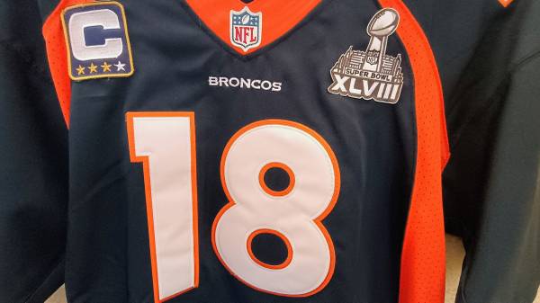 New WTGS Peyton Manning NFL Football Jersey & Uncut Football Cards Sheet size 48 Denver Broncos Super Bowl XLVIII Heavy New With Tags. See our other great Sports vintage art antiques jewelry...
