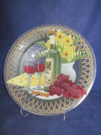11" Bowl Wine Bottle & Glasses Cheese Grapes $39.95