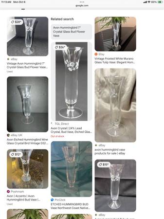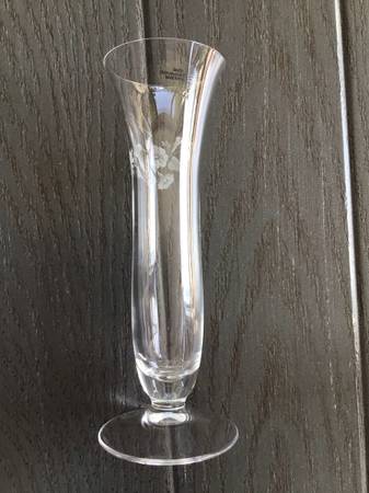 2). Avon 7” Hummingbird 24% Lead Crystal Glass Bud Flower Vase made in France. Sticker on rim.