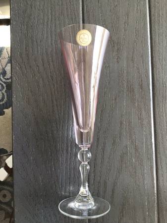 1). Avon 9” Pink Fluted Toasting Glass 24% Full Lead Cut Crystal with original sticker on rim. Made in Türkiye.