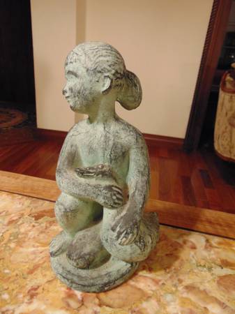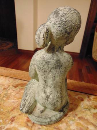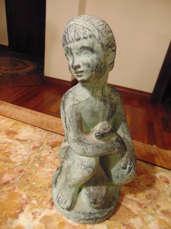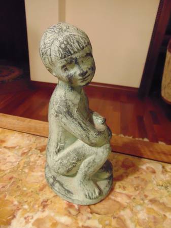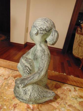Vintage Girl with Goose Statue, Verdi Green/Antique Bronze. 9" high x 5" wide x 5" deep. $35. Cash only; exact change. Call or text and leave a message.