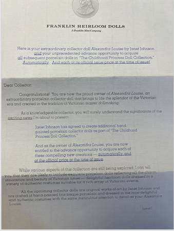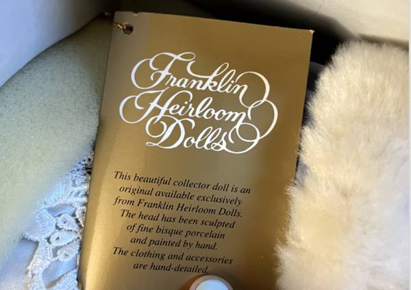 The Vintage Victorian unopened Franklin Mint doll and dog set is a collectible piece from 1996. Featuring a bisque porcelain doll with blonde hair and a light complexion, this set captures the charm and elegance of the Victorian era. The brand's reputation for quality and attention to detail ensures a prized addition to any doll collection. Comes with an official letter. Porch pick up in River Forest, IL. Delivery is available for $20 or I may be able to bring to you depending on your location.
