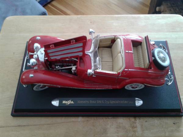 This vehicle is a 1936 Mercedes Benz and the 1:18 scale is the Maisto brand.