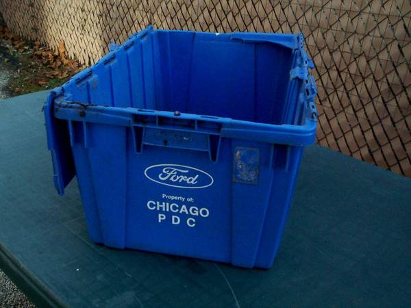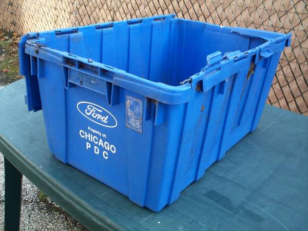 Odd vintage retired blue plastic storage tub branded "FORD" and "Properety of Chicago PDC". The Chicago PDC is a welcoming community of more than 75 PD professionals working in law firms, government agencies, in-house legal departments. Tub manufactured by Nestier by Buckhorn A Myers Industries Company. The tub probably held vehicle accessories or parts for the PD. The top hinged lids are cracked. The tub itself is in one piece. If you collect extremely rare odd Ford PD items...this may be for you. You will probably never find another. Tub measures aprox 16 1/2" length x 26 1/2" deep x 12" height. Pick up from Villa Park. Please call or text show contact info