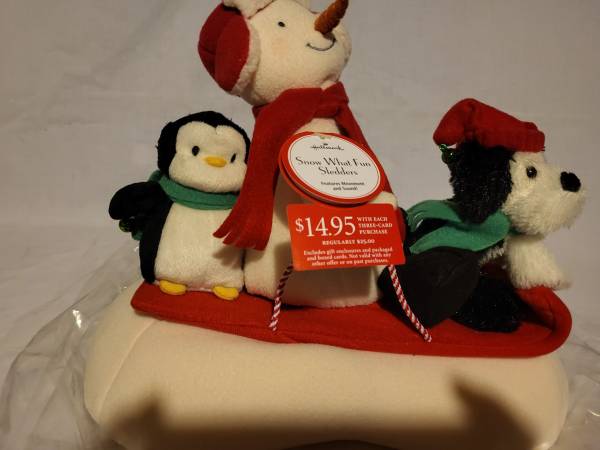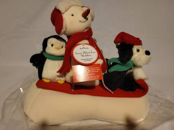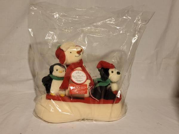 New Hallmark 2007 Snow What Fun Sledders with Animated Singing Snowman, Penguin, Dog.