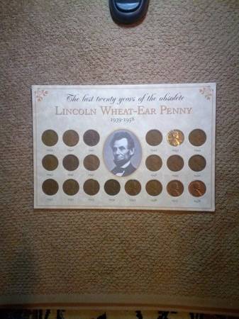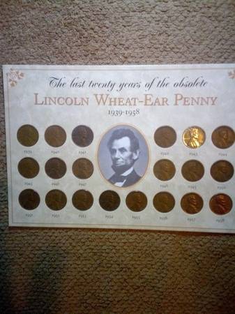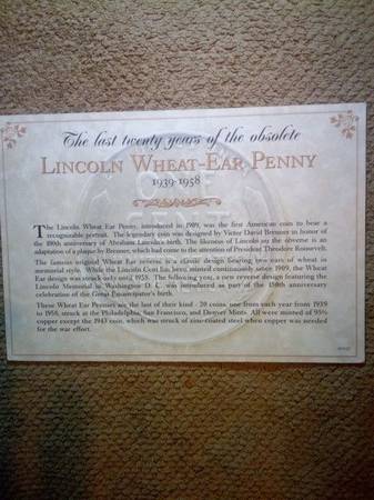 20 YEARS SAMPLES OF WHEAT PENNIES FROM 1939 TO 1958 INCLUDING THE 1943 STELL MADE PENNY, IN EXCELLENT CONDITION