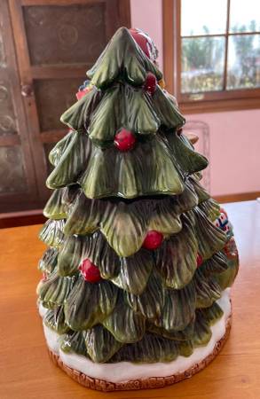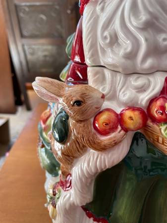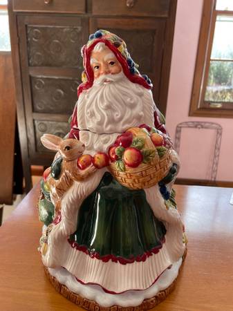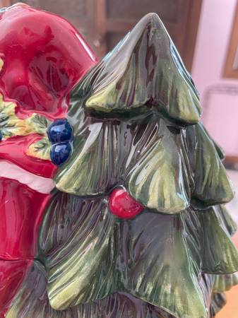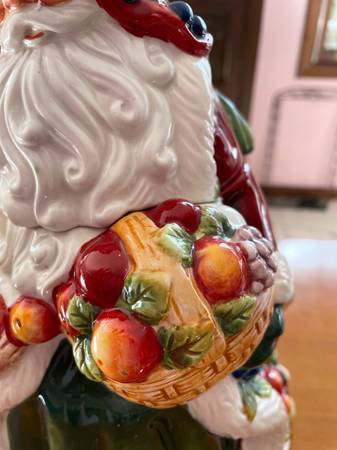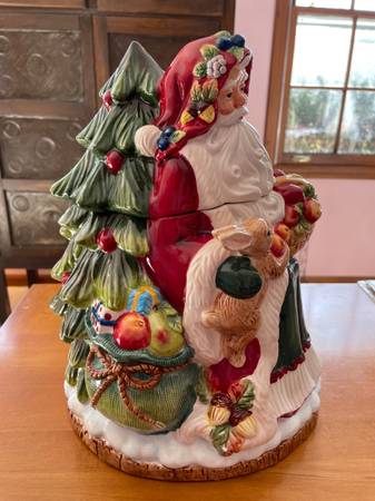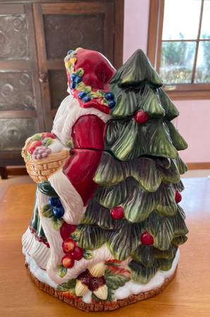 Appletree Design Fruitful Holiday Santa With Tree 11.5" Ceramic Cookie Jar. Cosmos Gifts #10694. Introduction: 2018. 9 3/4" x 8 7/8" x 11 1/2". Hand Painted High Quality Ceramic. Brand New in Box. Never displayed. Original price was $90. Cosmos Gifts features a collection of high quality porcelain and ceramic items. Cash only.