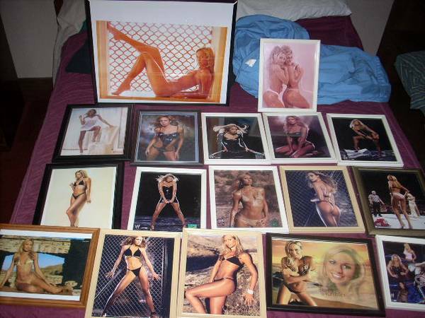 I'm selling my Stacey Keibler photos, Total of 17 photos, 16 of them are 8 x 10 and one 18 x 12. One of the 8 x 10 is Trish Stratus and the WWE Divas. They are all framed in glass except the 18 x 12, in a plastic frame. These are all real gloss photos. $45 for all the photos.