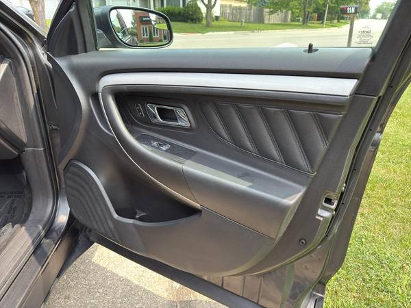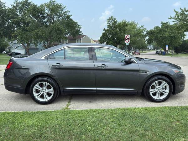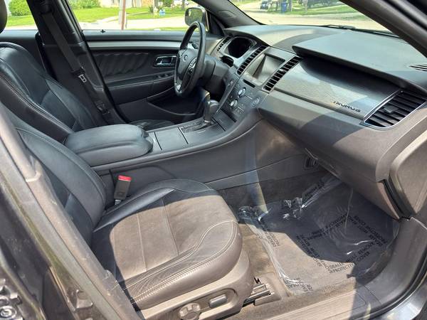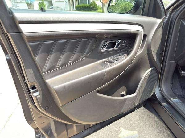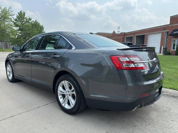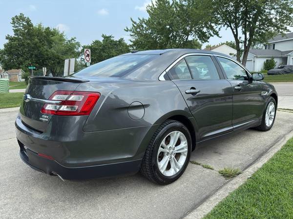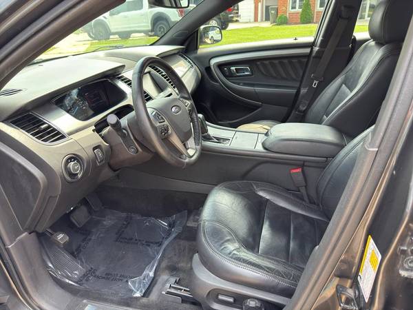This model has adjustable pedals that are luxurious and safety conscious. This unit is accented with premium quality alloy wheels. This 2015 Ford Taurus keeps you comfortable with Auto Climate. Protect this Ford Taurus from unwanted accidents with a cutting edge backup camera system. The Ford Taurus has a clean CARFAX vehicle history report. Maintaining a stable interior temperature in this Ford Taurus is easy with the climate control system. Easily set your speed in this model with a state of the art cruise control system. Increase or decrease velocity with the touch of a button. The Electronic Stability Control will keep you on your intended path. It has a V6, 3.5L high output engine. Front wheel drive on this 2015 Ford Taurus gives you better traction and better fuel economy. Enjoy the tried and true gasoline engine in the Ford Taurus. This large car projects refinement with a racy metallic gray exterior. Bluetooth technology is built into this 2015 Ford Taurus , keeping your hands on the steering wheel and your focus on the road. This is one of the largest cars available. The leather seats in it are a must for buyers looking for comfort, durability, and style. The installed navigation system will keep you on the right path. The rear parking assist technology on this vehicle will put you at ease when reversing. The system alerts you as you get closer to an obstruction. This 2015 Ford Taurus is accented with a stylish rear spoiler. Start this unit from inside with remote start.
