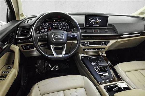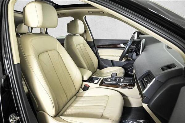 * Panoramic Roof * Leather Seats * Rear Spoiler * Black; Leather Seating Surfaces * Brilliant Black2018 Audi Q5 S-Line 45 Premium Plus Quattro w/ 20s, Navigation, B&O, CWP! 261hp turbocharged engine, Quattro all-wheel drive, 20'' upgraded wheels, Panoramic moonroof, Heated leather power seats w/ driver memory, heated rear seats, Bang & Olufsen 3D stereo, Virtual cockpit, Side assist w/ parking system plus, Power tailgate, Automatic LED headlights, Advance key system w/ push button starter, Heated power steering wheel with mounted controls, Smartphone interface, Power fold-in mirrors, Bluetooth, and tons more. Due to age, miles, and only having ONE KEY car is being sold AS IS AS SHOWN. Financing available for well qualified buyers!