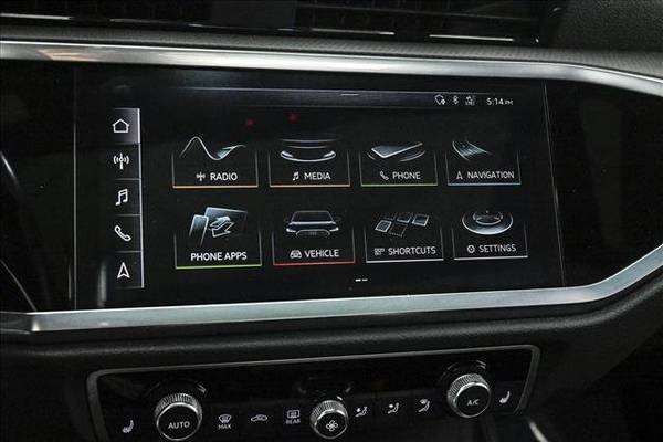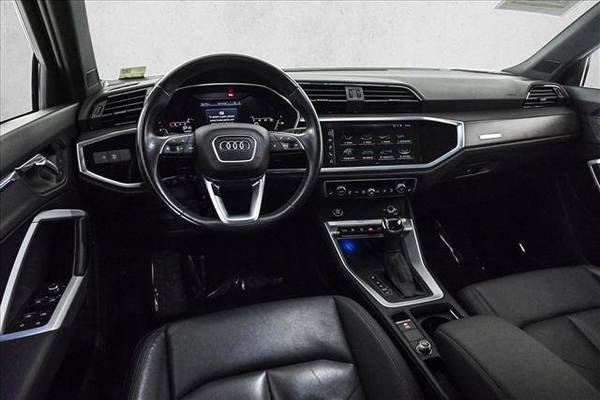 * Premium Plus Package * Technology Package * 19" Wheel Package * Panoramic Roof * Glacier White Metallic * Leather Seats * Navigation System * Brown Gray Natural Wood Matte Inlays * Lane Keeping Assist * Keyless Start * Rear Spoiler * Black; Leather Seating Surfaces2021 Audi Q3 S-Line 45 Premium Plus w/ Technology & 19s. 228hp 2.0L Turbocharged engine, Quattro all-wheel drive, Technology package, Bang & Olufsen premium 3D stereo, 19'' upgraded alloy wheels, MMI Navigation plus, Virtual cockpit, Adaptive Cruise control w/ Lane Assist, Automatic full LED headlights w/ high beam assist, Heated power leather seats w/ driver memory, Camera system w/ parking system plus, Advanced key system w/ push button starter, Audi side assist w/ rear cross traffic assist, Panoramic moonroof, Tilt and telescopic steering wheel w/ mounted controls and paddles, Power tailgate, Dual zone automatic climate control, Wood inlays, Compass auto-dimming mirror, Alarm, Homelink connection, Audi drive select, and tons more. Due to age, and some scratches/dings car is being sold AS IS AS SHOWN. Both keys included and financing available!