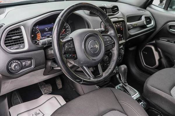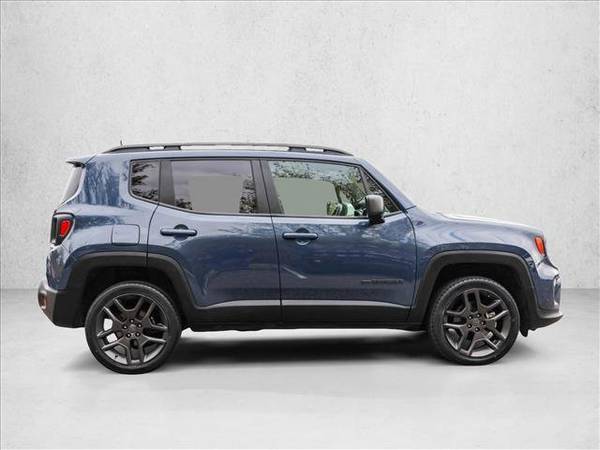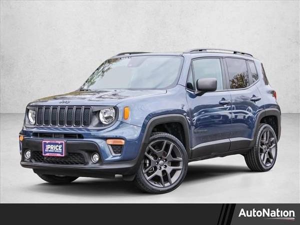 The following items have been reconditioned on this vehicle: all new tires! * Sun & Sound Group * Convenience Group * Panoramic Roof * Passive Entry Remote Start Package * Navigation System * Slate Blue Pearlcoat * Lane Keeping Assist * Keyless Start * Rear Spoiler * Black; 80Th Edition Premium Cloth Bucket Seats * Engine: 2.4L I4 Zero Evap M-Air * Goodyear Brand Tires * Protective Clear Plastic Film - 2 * Transmission: 9-Speed 948Te AutomaticThis vehicle includes a Money-Back Guarantee* and passed our precise inspection process. Best of all the price you see is the price you pay. No haggling. No back and forth. No pressure. And this price is so good it is guaranteed. *Money-Back Guarantee is valid for 5 days or 250 miles, whichever comes first. Subject to certain terms and conditions. See store for details. Some restrictions apply.Thank you for your interest in one of AutoNation Honda OHare's online offerings. Please continue for more information regarding this 2021 Jeep Renegade 80th Anniversary with 25,158mi. This Jeep includes: ENGINE: 2.4L I4 ZERO EVAP M-AIR (STD) 4 Cylinder Engine Gasoline Fuel *Note - For third party subscriptions or services, please contact the dealer for more information.* The CARFAX report shows this Jeep Renegade is a well cared for One-Owner vehicle. This Jeep Renegade 80th Anniversary has a tough exterior complemented by a well-designed interior that offers all the comforts you crave. This 4WD-equipped vehicle will handle majestically on any terrain and in any weather condition your may find yourself in. The benefits of driving an Four Wheel Drive vehicle, such as this JeepRenegade 80th Anniversary, include superior acceleration, improved steering, and increased traction and stability. The Renegade 80th Anniversary has been lightly driven and there is little to no wear and tear on this vehicle. The care taken on this pre-owned vehicle is reflective of the 25,158mi put on this Jeep. Take the guesswork out of where you are going with the top-tier navigation system found on this exceptional Jeep Renegade. How often was the oil changed? Were important service intervals taken care of? You'll have the records on this vehicles to know for sure. This pre-owned Jeep Renegade looks like new with a clean interior that's been well-kept. This Jeep Renegade is well-equipped, well-cared for and still covered under the manufacture's factory warranty. The brand new set of tires means that you will be able to drive off the lot without hesitation. You can drive off in the Jeep Renegade 80th Anniversary feeling safe and confident with these new tires.