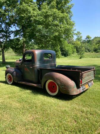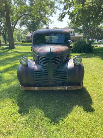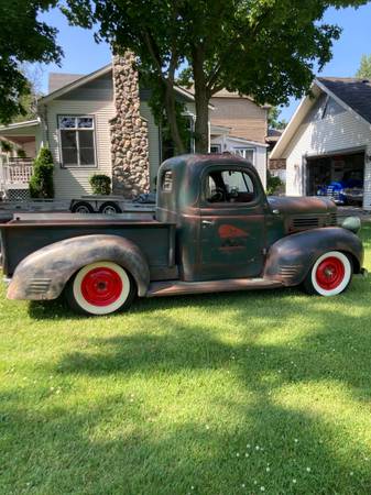 1941 Dodge Short bed truck, chevy 350 4 bolt main ,Turbo 350 auto ,Camaro ft subframe ,steel rear frame notched for lowering 10 bolt posi, ft disc brakes , PS ,tilt column , rear fuel tank, All steel body is not rusty , only surface patina , Drivetrain has about 1000 miles since rebuild , No trades .