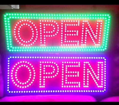 New Large OPEN sign 32 x 13 inches comes with power supply and hunging chain, the sign is not water proof, these is often used in food concession trucks and restaurants.