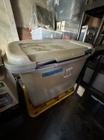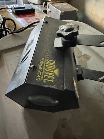 I retired from DJing years ago and forgot I had this tub full of DJ lights. It’s full of robo lights, spot lights, party lights, color changers, red and blue flashers and more.