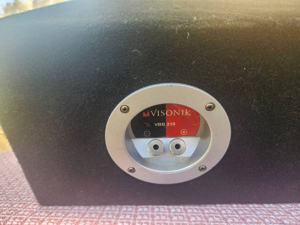AUTO/TRUCK WEDGE STYLE SUBWOOFER DOUBLE 10" DRIVERS MADE BY VISONIK..MODEL VBB210 NO AMP UNPORTED ENCLOSURE BLACK CARPETED. $125 CASH OR BEST OFFER PLEASE INCLUDE A PHONE NUMBER FOR TEXTING IF...