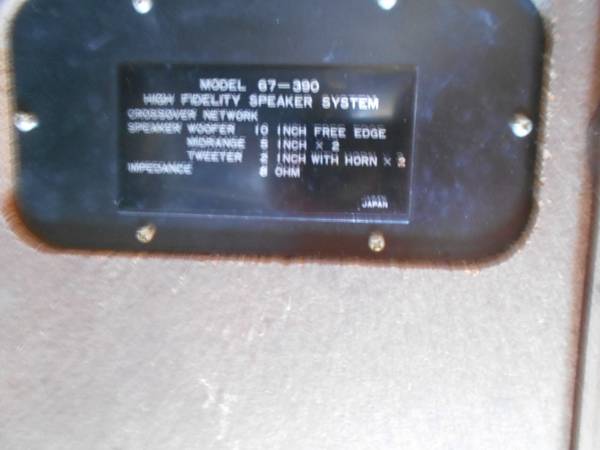 Claricon Wood Speakers Model #27-390 25"H x 12"W. The speakers have 10" Woofer, Tweeter 2" w/Horn by 2, Marange 2"x2" and Impedance 8 OHM.