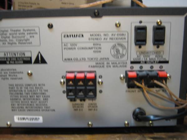 Aiwa 5 channel surround stereo receiver model # AV D58 in excellent condition. Works and sounds great. Will hook it up so you can try it out. Comes with remote control. Check out pics $ 65. If...