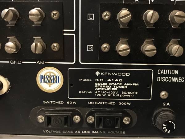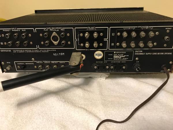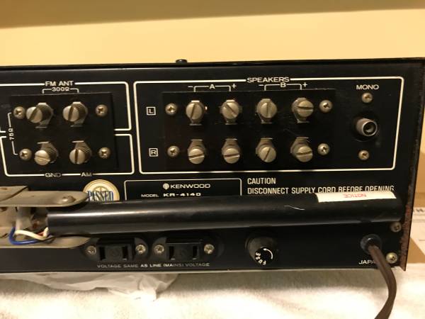 For sale is my Kenwood KR – 4140 AM/FM stereo receiver. Plays well in good condition from a non-smoking house hold. Thank you for your consideration. A panel light bulb appears to need replacement.