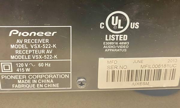 Pioneer VSX522K Polk Audio PSW10 Sub Woofer